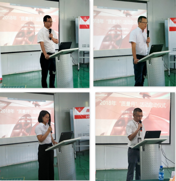 The factory director Wu Xinghui unveiled the curtain of Quality Month Event with a speech. He expressed his determination to minimize internal loss. Then the Quality Center reported the implementation plan of the Quality Month Event, and Tan first affirmed the better quality performance of the first half of 2018 in the client compared to 2017, put forward improvement schemes for reduction of quality loss in strict accordance with the requirements of 5+7, decomposed the requirements for statistical analysis of quality loss to each department, workshop, team and responsible person in the form of the amount of loss, and also emphasized that "the quality of people (ability, attitude) determines the quality of work, and the quality of work leads to the quality of products".